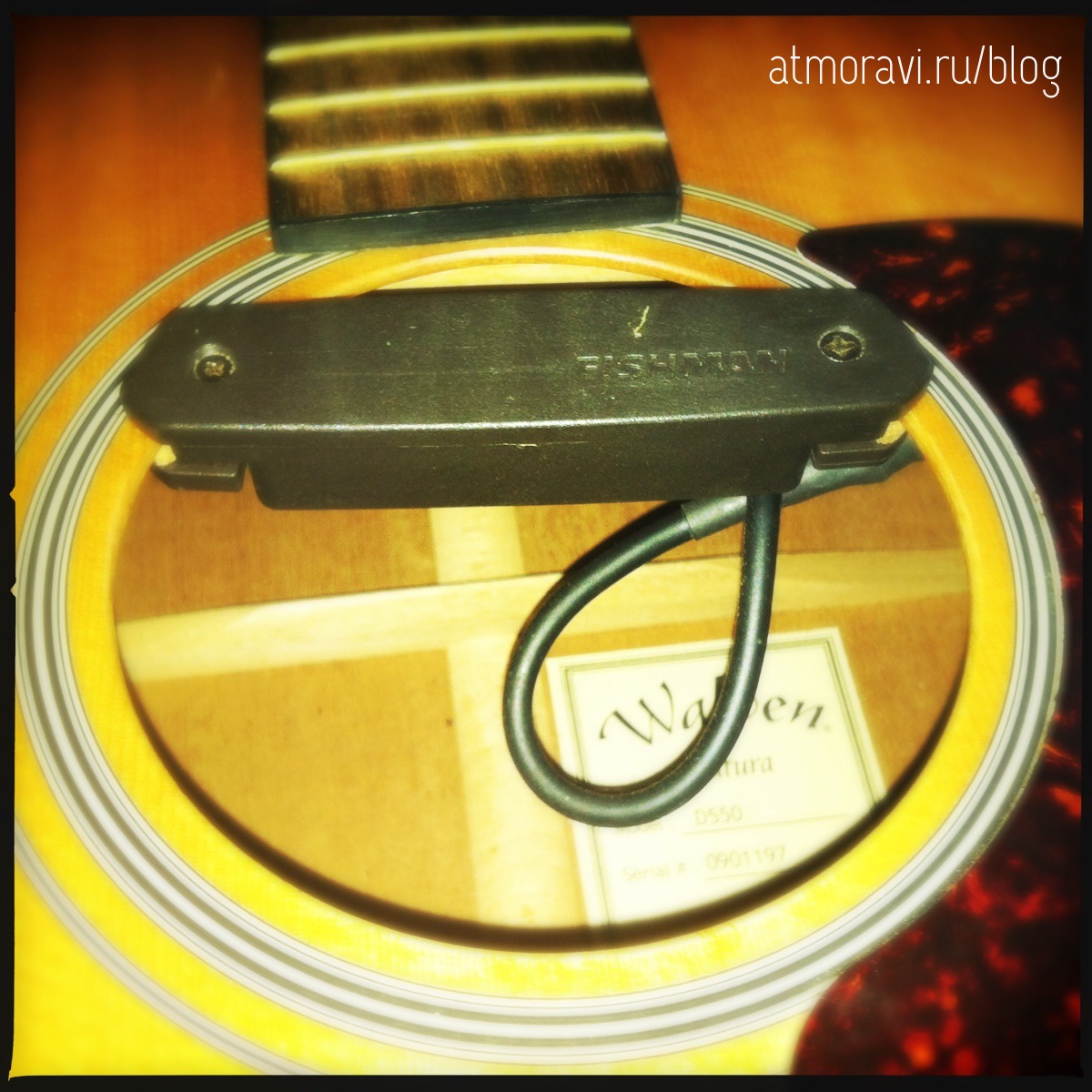 Встал вопрос как ее подзвучить. Самым легким способом показалось приобретение звукоснимателя FISHMAN NEO-D (в Мире Музыки продают новую модель с фидбэк-бастером за 4800). По цене он доступен. Мне нравилось, что его можно вкрутить в любую гитару. Как он по звуку предстояло выяснить.